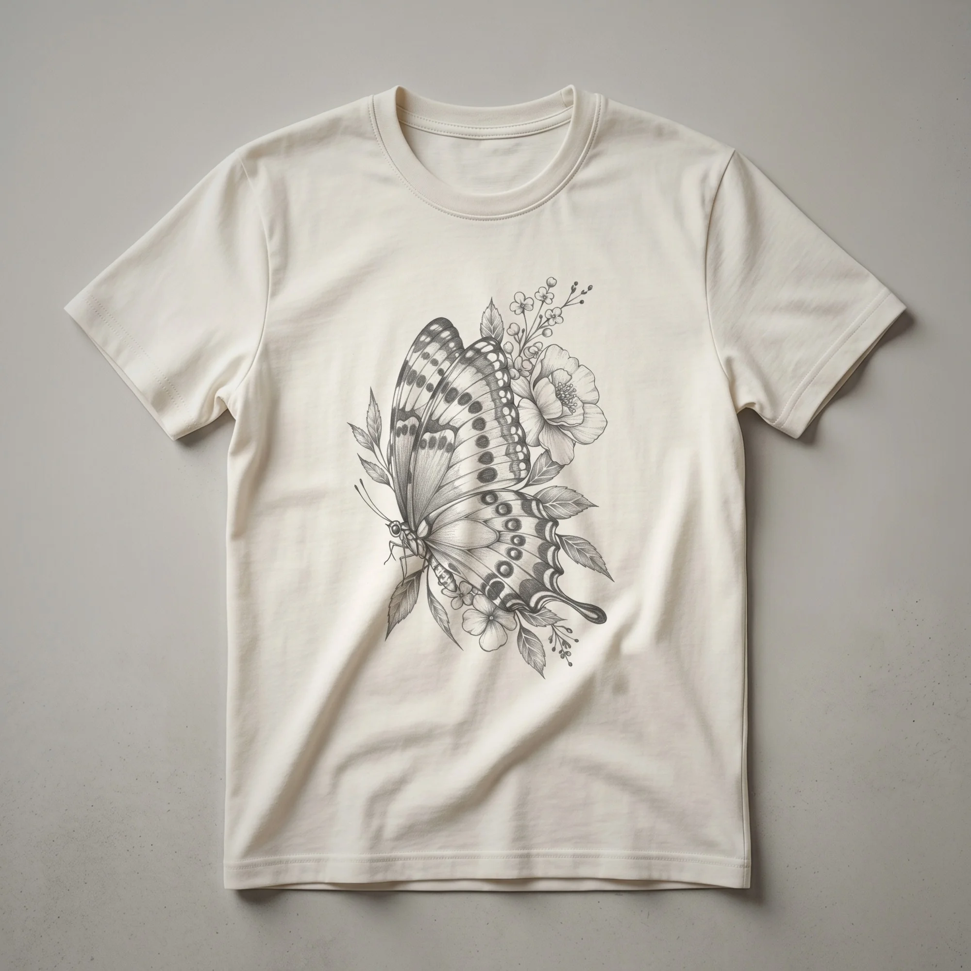 Hover to zoom · tap to expand Vintage Butterfly and Floral Drawing Graphic T-Shirt for Nature Lovers