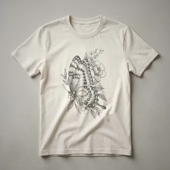 - A striking vintage butterfly and floral drawing tee for nature enthusiasts.