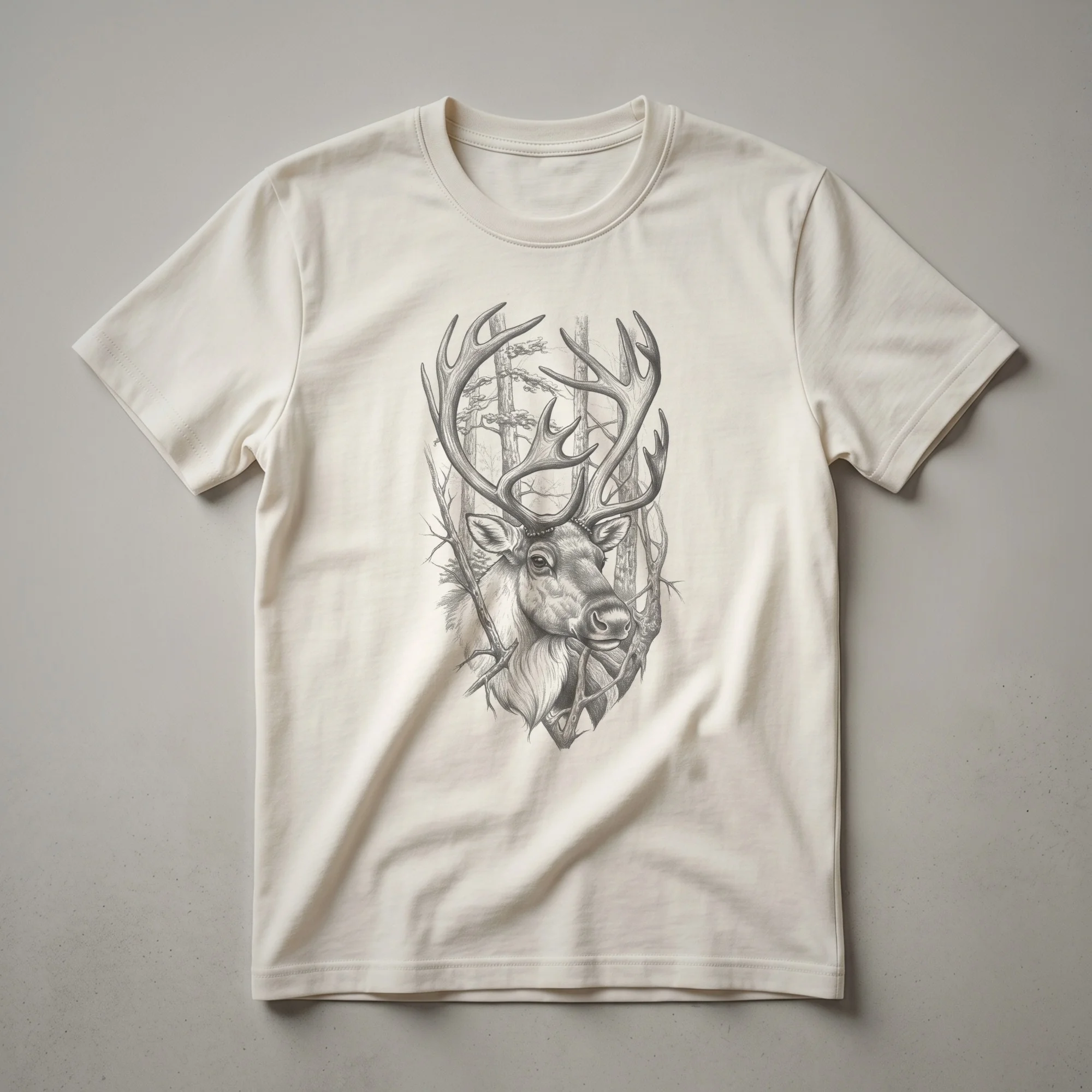 - Celebrate the majestic caribou with this detailed vintage line art graphic tee.