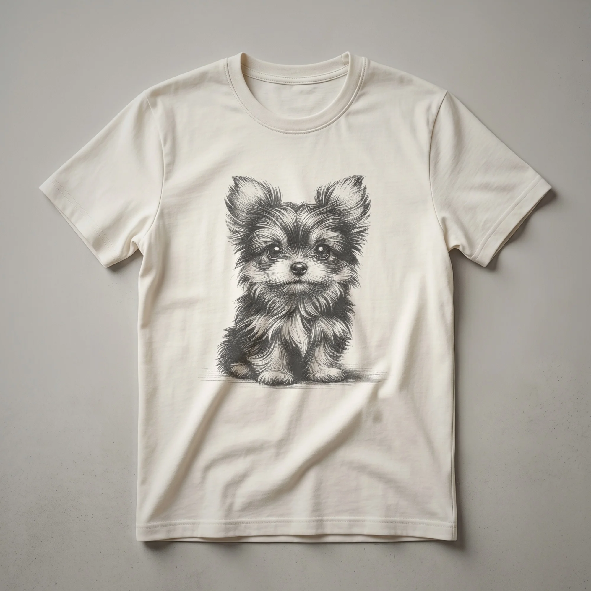 Chorkie owners who appreciate unique and artistic apparel will reach for this vintage-style drawing t-shirt. This eye-catching graphic tee features a charming, hand-drawn illustration of a Chorkie, a delightful crossbreed combining the Yorkshire Terrier and the Chihuahua. These small dogs are known for their spirited personalities and affectionate nature, often forming strong bonds with their families. The drawing captures the essence of the breed with its detailed linework and classic, slightly faded aesthetic, evoking a sense of nostalgia. This shirt works well for anyone who adores their Chorkie, whether they are a dedicated dog mom or a proud dog dad. It makes a thoughtful gift for birthdays, holidays, or just because for the Chorkie enthusiast in your life. Wear this unique tee to your next dog park visit, casual outing with friends, or simply while relaxing at home with your beloved canine companion. Celebrate the special connection you share with your Chorkie with this distinctive piece of apparel.