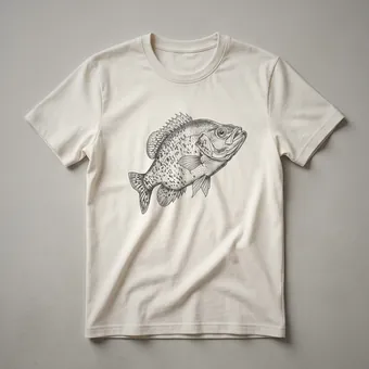 Crappie anglers know the thrill of reeling in these popular freshwater game fish. This vintage-inspired t-shirt features a detailed black and white line drawing of a crappie, capturing its distinctive body shape and fins with subtle shading. The artwork evokes a classic, hand-drawn feel, reminiscent of old field guides or vintage fishing publications. Crappie, scientifically known as Pomoxis, are found in lakes and rivers across North America, often inhabiting weedy areas and submerged structures. This tee is a thoughtful gift for any fisherman who appreciates the art of angling and the beauty of aquatic life. It's a staple in the collection for anyone who enjoys spending time on the water, whether casting a line or simply admiring the natural world. Wear this shirt to your next fishing trip, to a casual gathering with fellow anglers, or simply as a comfortable everyday tee that expresses your passion for the sport. This graphic shirt is a great way for fishermen to display their hobby.