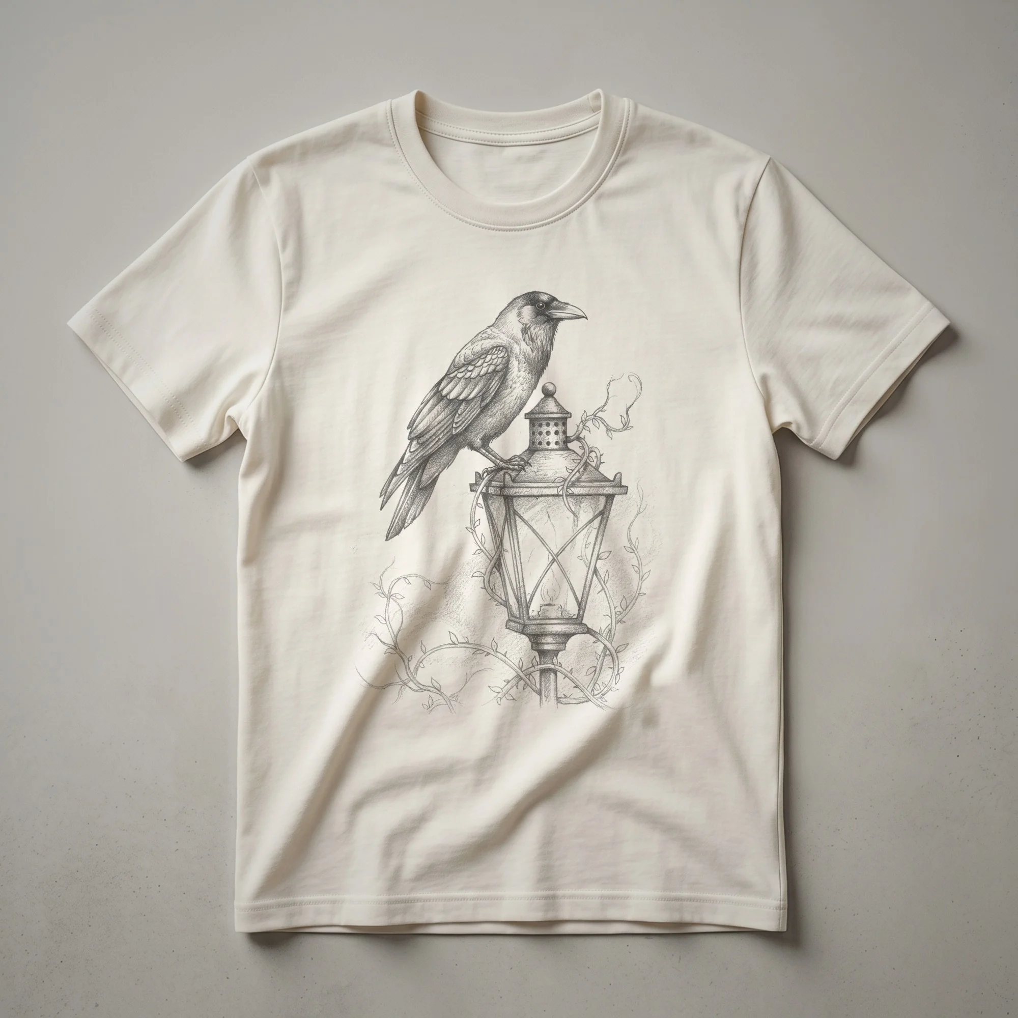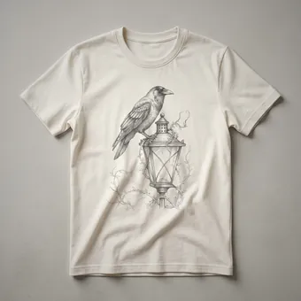 Bird watchers and nature enthusiasts will appreciate this striking graphic tee featuring a detailed vintage drawing of a crow perched on an old-fashioned lantern. Crows, known for their intelligence and adaptability, are often found in diverse habitats across the globe, from forests to urban environments. This unique design captures the enigmatic nature of these corvids, making it a standout piece for any wardrobe. The intricate linework of the drawing evokes a sense of nostalgia and artistry, appealing to those who admire both wildlife and classic aesthetics. This t-shirt works well for casual outings, hikes in nature, or simply relaxing at home. It makes a thoughtful gift for anyone who is fascinated by birds, particularly the clever crow, or who enjoys vintage-inspired art. Wear this shirt to express your connection to the natural world and your appreciation for detailed, artistic representations of wildlife. It's a staple in the collection for those who seek unique apparel that tells a story.
