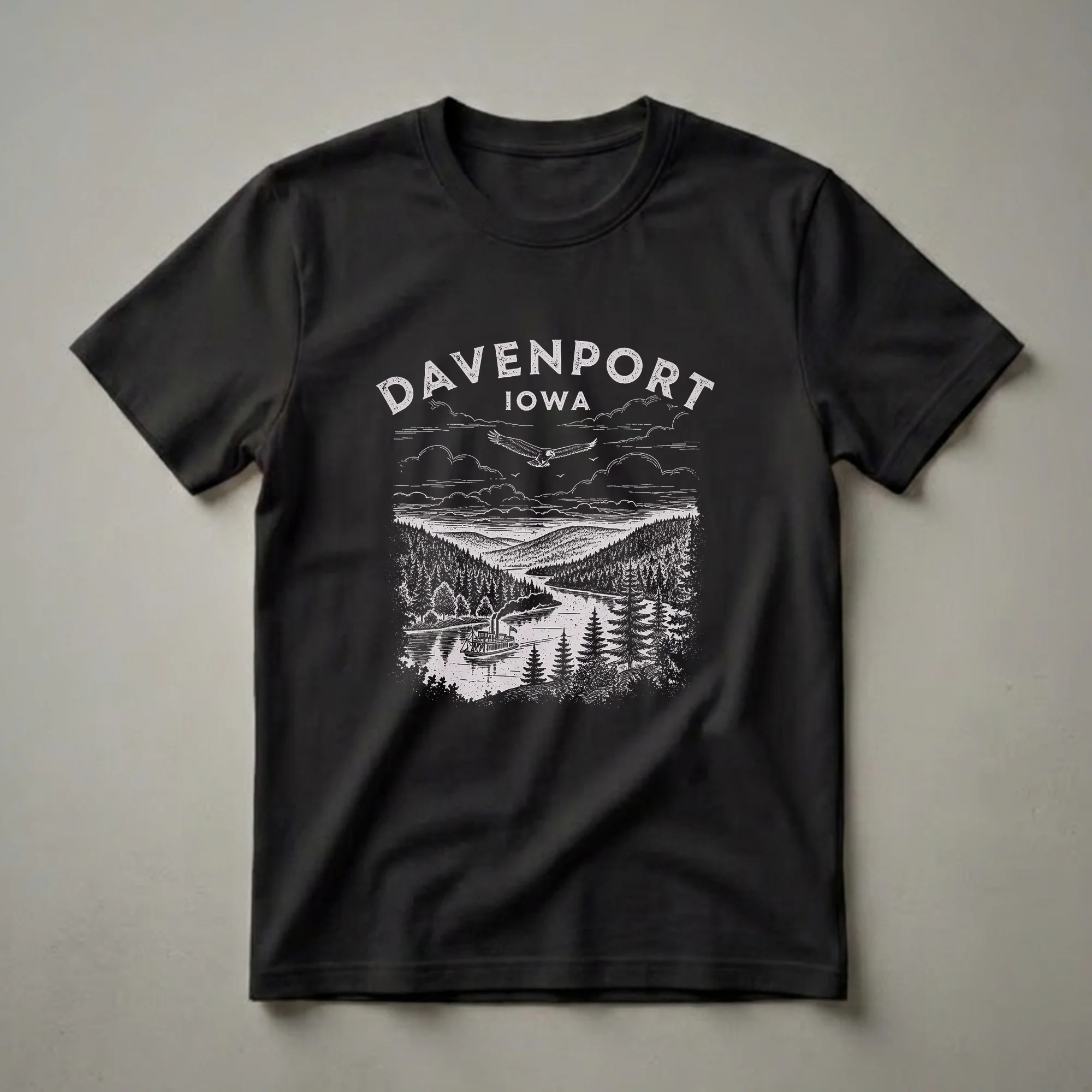 - A unique graphic tee for residents and fans of Davenport, Iowa.