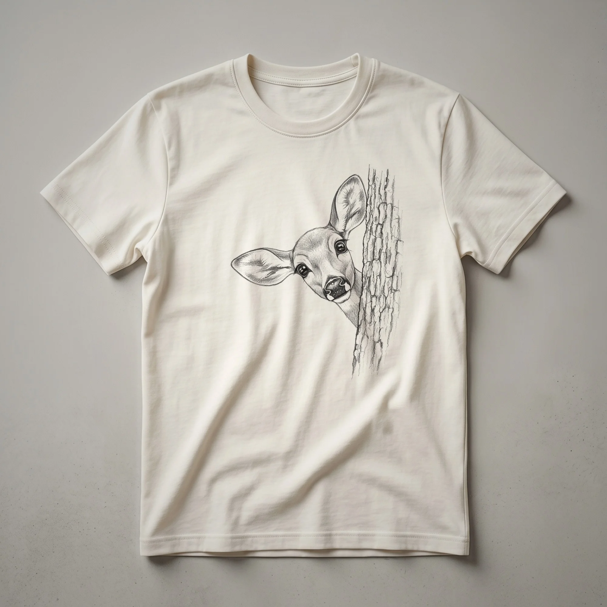 Hover to zoom · tap to expand Vintage Deer Fawn Peeking Drawing Art T-Shirt for Wildlife Lovers