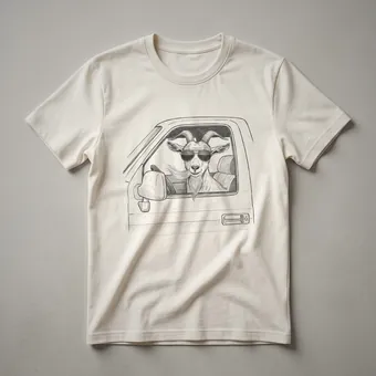 Wildlife enthusiasts and lovers of unique art will appreciate this eye-catching t-shirt. The design showcases a striking black and white drawing of a goat sporting a hat while confidently driving a car. This graphic tee captures a whimsical, vintage aesthetic that stands out. Goats, known for their agility and adaptability, can be found in diverse habitats worldwide, from steep mountain terrains to grasslands. This shirt is a thoughtful gift for anyone who admires these fascinating mammals or enjoys quirky, artistic apparel. Wear this unique t-shirt to casual outings, nature walks, or to express your distinctive style. It's a go-to tee for sparking conversations and showcasing your appreciation for the wild and the wonderfully weird. This shirt makes a thoughtful gift for the nature lover in your life who has a sense of humor.