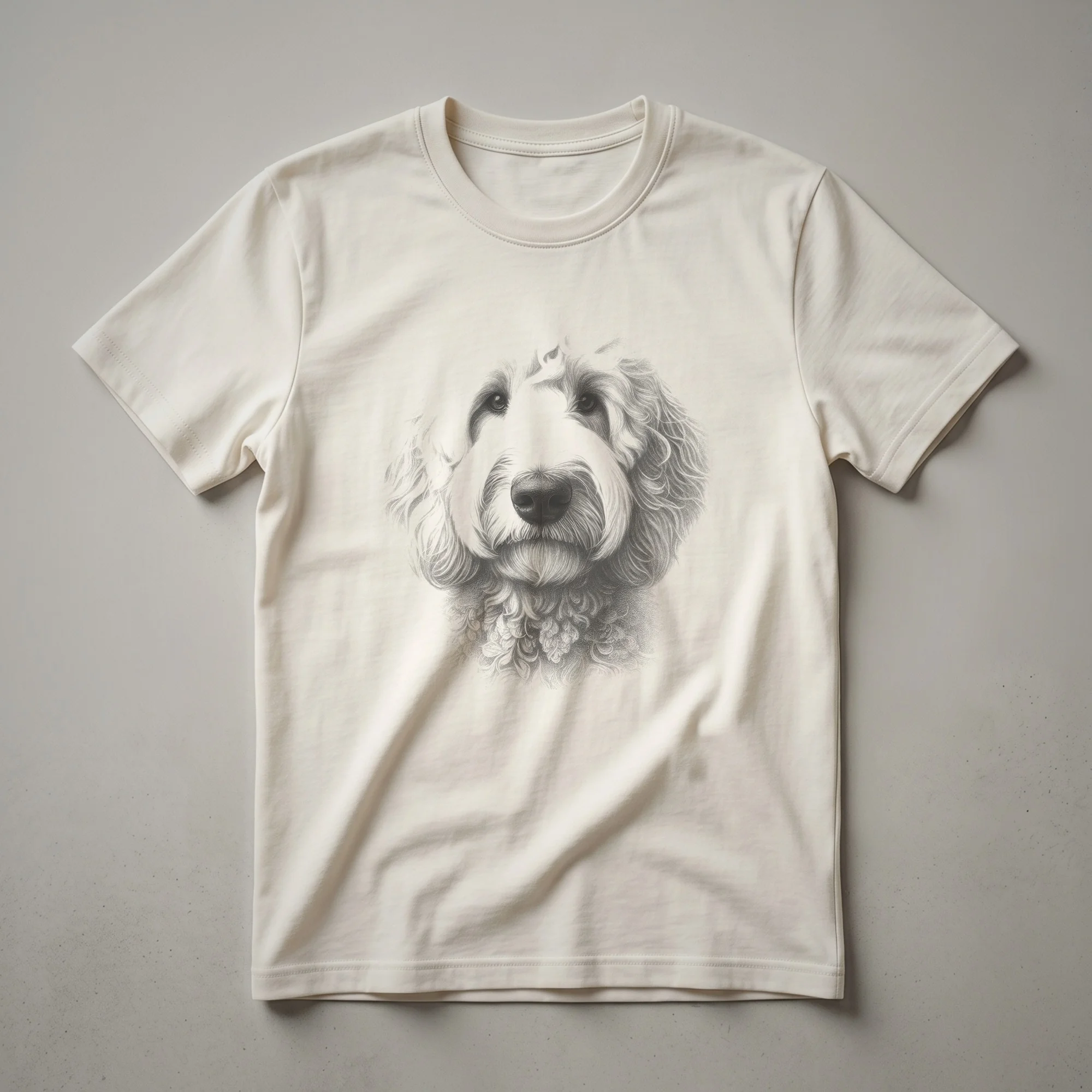 Goldendoodle owners who appreciate classic art will reach for this unique graphic tee. The design features a detailed, vintage-style line drawing of a Goldendoodle, capturing the breed's friendly and intelligent expression. Goldendoodles, a crossbreed between a Golden Retriever and a Poodle, are known for their playful nature and hypoallergenic coats, making them a popular choice for families. This t-shirt is a wonderful way for any Goldendoodle mom or dad to express their affection for their beloved pet. It makes a thoughtful gift for birthdays, holidays, or just because. Wear this comfortable shirt to your next dog park visit, a casual outing with friends, or while relaxing at home with your canine companion. This eye-catching shirt celebrates the charm of the Goldendoodle breed.