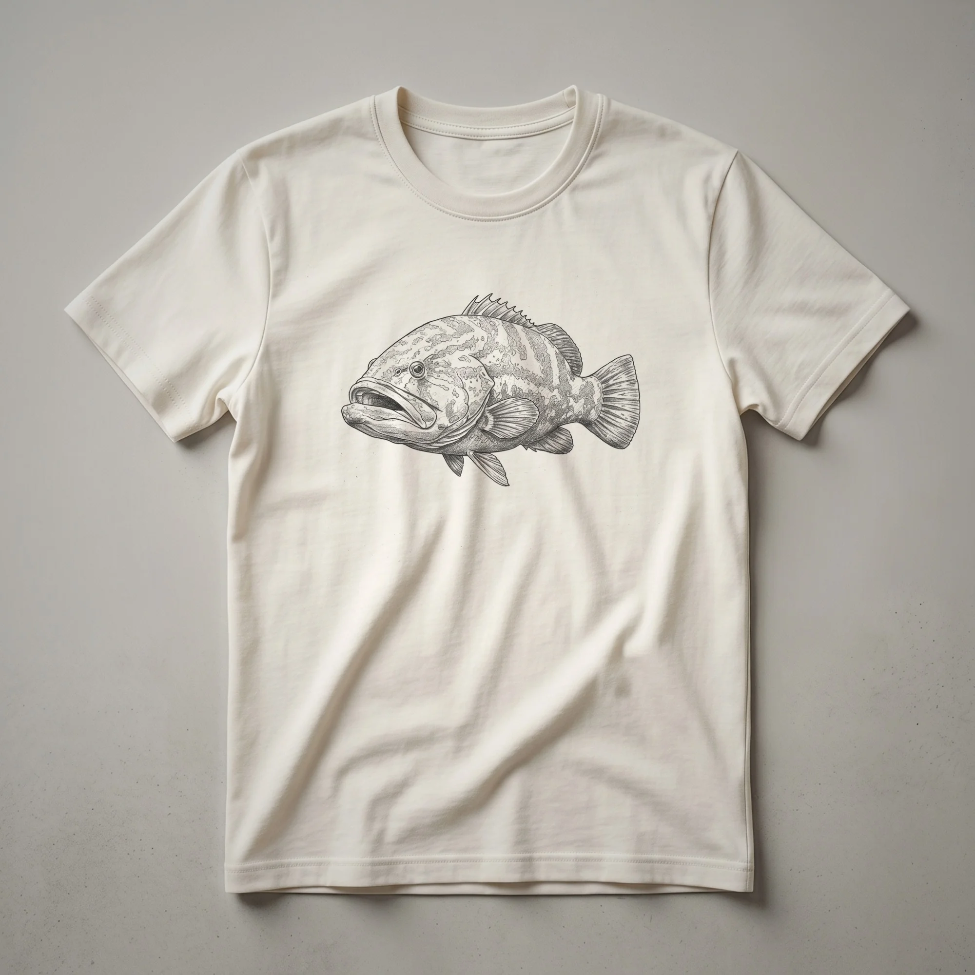 Anglers and marine life enthusiasts will appreciate this striking t-shirt featuring a vintage-style drawing of a Goliath Grouper. This iconic fish, known for its immense size and distinctive appearance, is depicted in a classic artistic rendering that evokes a sense of nostalgia. The Goliath Grouper (Epinephelus itajara) is one of the largest bony fish found in the Atlantic Ocean, inhabiting shallow reefs, mangroves, and estuaries. Its impressive stature and powerful presence make it a sought-after catch for sport fishermen. This graphic tee is a staple for anyone who enjoys the thrill of the catch or simply admires the ocean's most magnificent creatures. It makes a thoughtful gift for the fisherman in your life who has a passion for deep-sea adventures or a fascination with these gentle giants of the sea. Wear this shirt to your next fishing trip, to a casual outing with friends, or while exploring coastal areas. It’s a conversation starter for fellow fishing aficionados and a unique way to express your connection to the marine world. This comfortable tee is a go-to choice for casual wear, offering both style and a nod to your favorite aquatic subject.