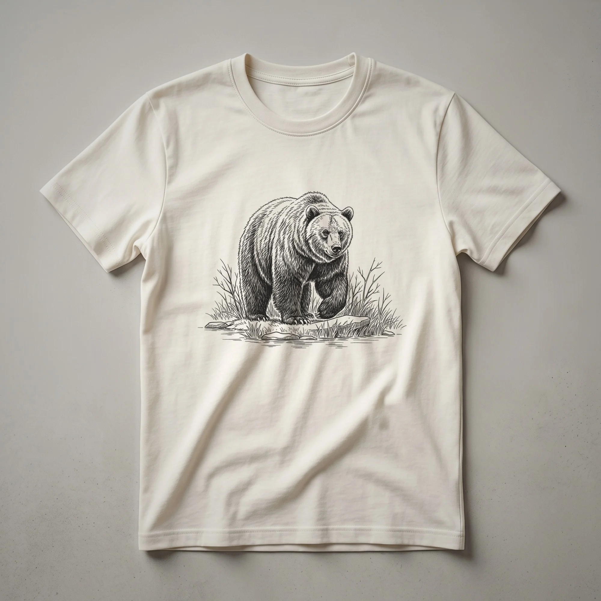 - Graphic t-shirt featuring a vintage grizzly bear illustration for nature lovers.