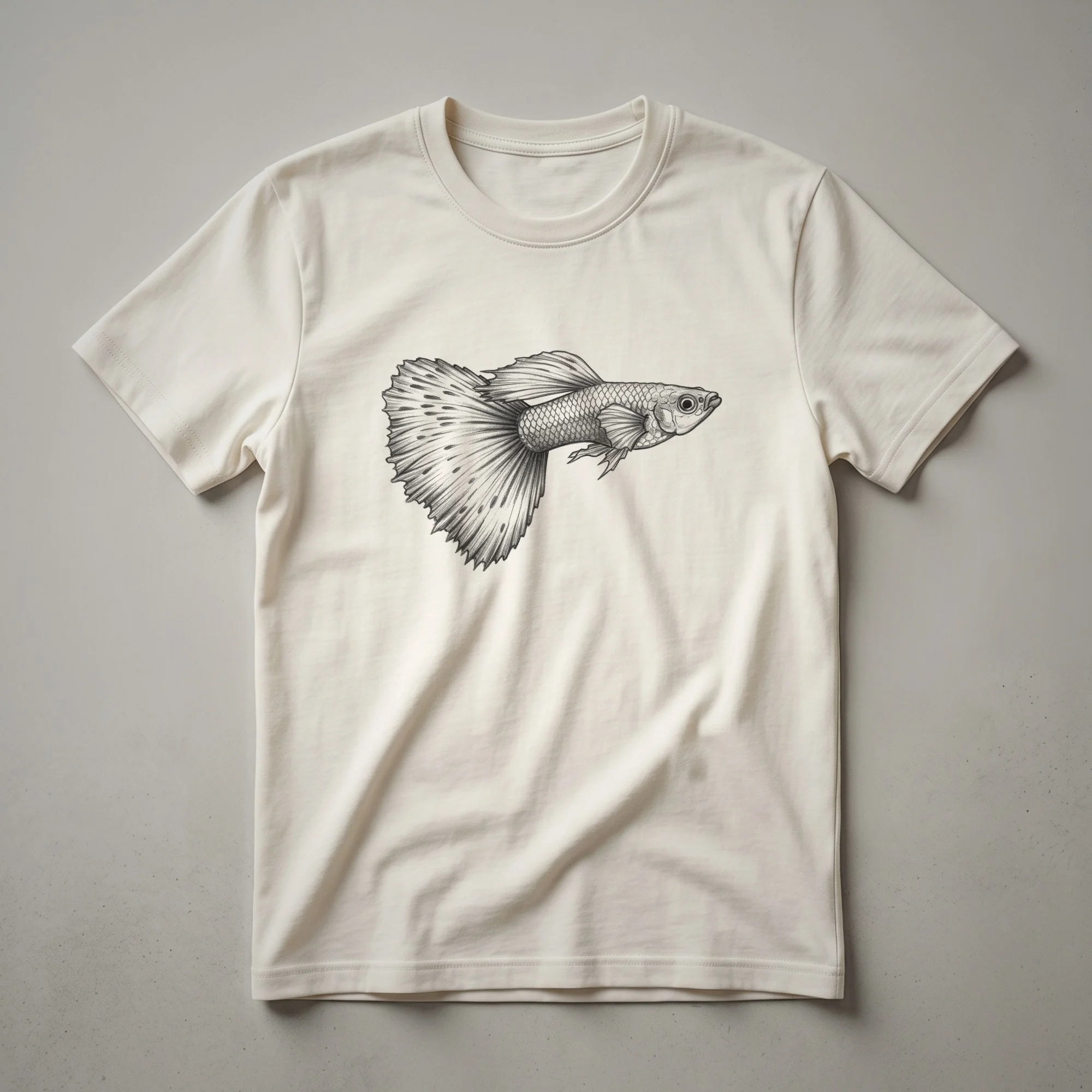 Aquarium enthusiasts and fish keepers will appreciate the detailed, vintage-style illustration of a guppy fish on this unique tee. The artwork features a single guppy rendered in classic black ink, evoking a sense of timeless scientific illustration. Guppies, scientifically known as Poecilia reticulata, are one of the most popular freshwater aquarium fish due to their vibrant colors and prolific breeding habits. They originate from South America, thriving in warm, slow-moving waters. This graphic t-shirt is a subtle yet striking way to express your passion for these fascinating creatures. It makes a thoughtful gift for anyone who finds joy in maintaining a freshwater aquarium or simply admires the beauty of aquatic life. Wear this shirt to your next aquarium club meeting, a casual day out, or while tending to your own underwater world. This comfortable tee is a staple for any fish lover's wardrobe, offering a blend of artistic appeal and personal interest.