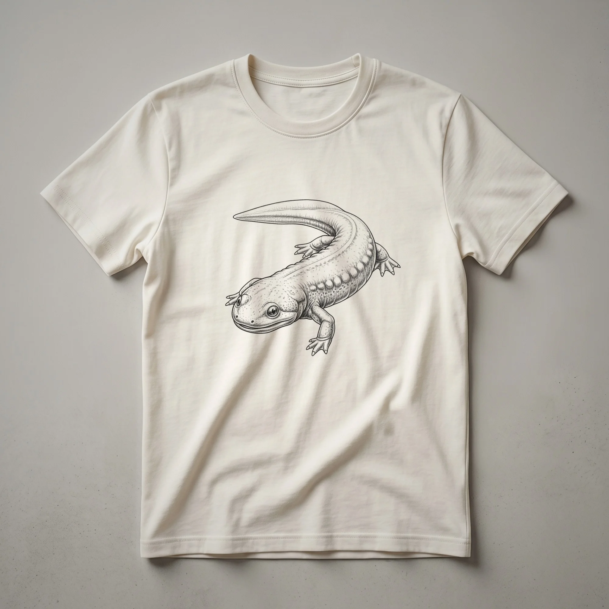 Wildlife enthusiasts who appreciate the unique and often overlooked creatures of the natural world will reach for this striking t-shirt. The design features a detailed, vintage-style drawing of a hellbender salamander, a fascinating aquatic amphibian. These large salamanders, also known as mudpuppies or snot otters, are native to eastern North America and are the largest salamanders in the United States. They inhabit clean, cold, fast-flowing streams and rivers, where they are often found under rocks. The drawing captures the creature's distinctive flattened body, external gills, and wide head, rendered in a classic, artistic style that evokes a sense of natural history. This tee is more than just apparel; it's a conversation starter for anyone passionate about herpetology or conservation. It makes a thoughtful gift for the biologist, hiker, or nature photographer in your life who has a special appreciation for these often-misunderstood aquatic dwellers. Wear this shirt on your next nature walk or to a casual gathering to express your connection to the wild.