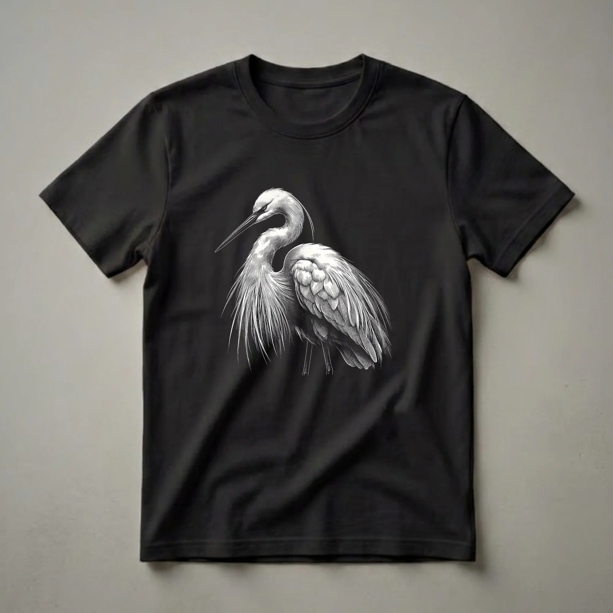 Birdwatchers and nature enthusiasts will appreciate the intricate detail of this vintage-style heron graphic tee. The design features a striking, monochromatic illustration of a heron, rendered with fine line work that captures the texture of its feathers and the elegance of its long beak and neck. Herons are wading birds known for their patience and grace, often found in wetlands, marshes, and along coastlines across the globe. They are skilled hunters, using their sharp beaks to catch fish and amphibians. This shirt is a thoughtful gift for anyone who admires these majestic creatures, whether they are avid birders, enjoy hiking in natural habitats, or simply appreciate fine art. This t-shirt is a versatile addition to any wardrobe, a thoughtful choice for casual outings or as a conversation starter among fellow nature lovers. Wear it to your next birdwatching expedition or a nature photography walk. This apparel celebrates the serene beauty of these magnificent birds.