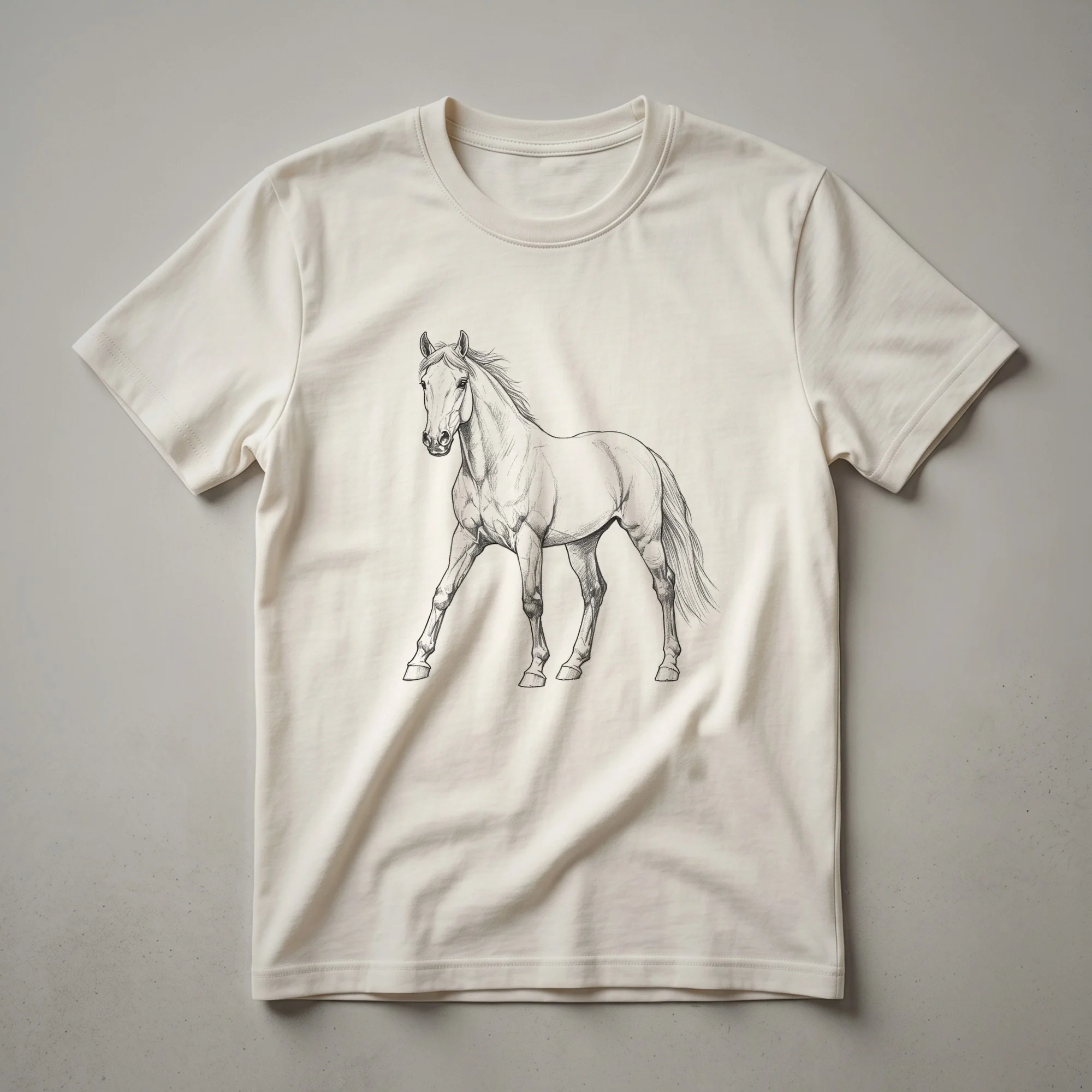 Equine enthusiasts who appreciate the elegance and power of horses will reach for this vintage-style graphic tee. The design features a striking black and white line drawing of a horse's head in profile, capturing the animal's noble features with a classic artistic touch. Horses, known for their strength, grace, and historical significance in transportation and sport, are celebrated in this eye-catching apparel. This shirt works well for anyone who has a deep appreciation for these magnificent mammals, whether they are riders, owners, or simply admirers of their beauty. It makes a thoughtful gift for the horse lover in your life, a thoughtful choice for casual outings, visits to the stable, or simply relaxing at home. Wear this t-shirt to express your passion for all things equestrian and connect with fellow horse lovers.