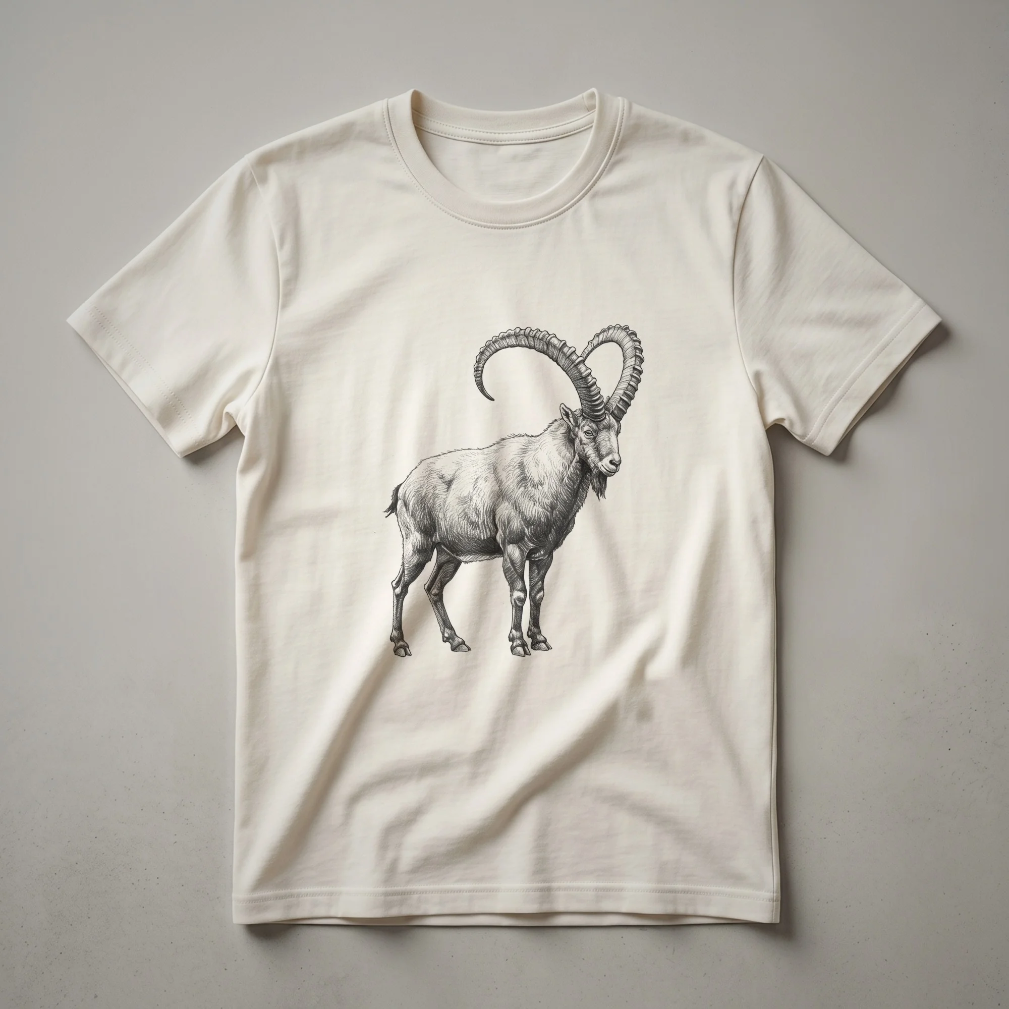 - Vintage Ibex drawing graphic t-shirt for wildlife lovers.