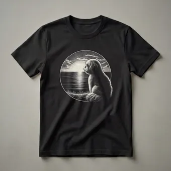 Lhasa Apso owners who appreciate vintage art will adore this striking graphic tee. The design features a detailed woodcut-style illustration of a Lhasa Apso dog sitting on a grassy bank, gazing out at a serene sunset over the water. The sun's rays emanate outwards, creating a radiant halo effect, while stylized clouds drift across the sky. The water reflects the warm glow of the setting sun, with gentle ripples suggesting a calm evening. This shirt captures the contemplative nature of these beloved companions. Originating from Tibet, Lhasa Apsos were historically bred as indoor sentinels in Tibetan monasteries and palaces, known for their loyalty and keen senses. This t-shirt is a wonderful way for any Lhasa Apso mom or dad to express their affection for their furry friend. It makes a thoughtful gift for birthdays, holidays, or just because. Wear this unique tee to your next dog park visit or casual outing to spark conversations with fellow dog enthusiasts.