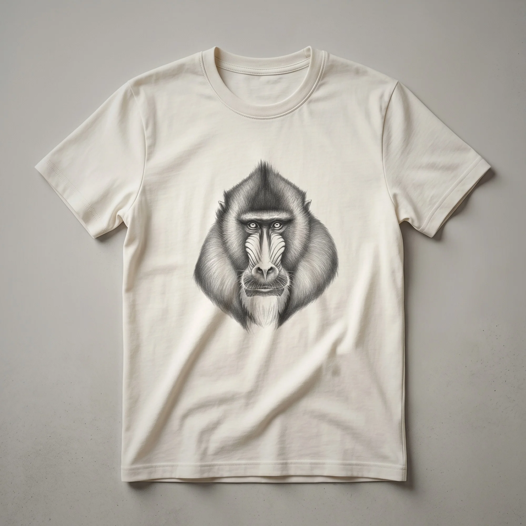 Primate enthusiasts will appreciate the detailed artistry of this vintage mandrill drawing t-shirt. The design features a striking, close-up portrait of a mandrill's face, rendered with fine line work that highlights its distinctive features, including its prominent brow ridges and textured fur. Mandrills, known for their vibrant facial coloration and social complexity, are the largest of all monkeys and inhabit the tropical rainforests of West Africa. This graphic tee captures the essence of these fascinating creatures, making it a unique addition to any wardrobe. It's a thoughtful gift for anyone who admires wildlife or has a special connection to primates. Wear this shirt to a zoo visit, a nature documentary screening, or simply as a conversation starter during casual outings. This eye-catching shirt is a staple for those who want to display their appreciation for the natural world.