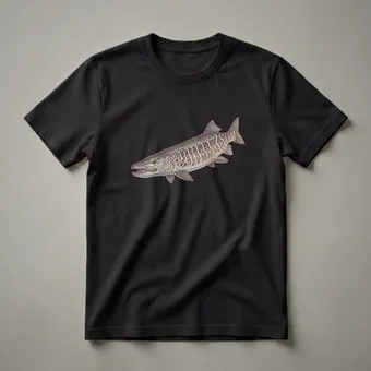 Muskie anglers who appreciate the predatory prowess of the "fish of 10,000 casts" will reach for this distinctive t-shirt. The artwork features a detailed, vintage-style drawing of a Muskie, also known as a Great Lakes Muskellunge, rendered with fine lines and subtle shading. This powerful freshwater predator is recognized for its elongated body, large mouth filled with sharp teeth, and distinctive dark, chain-like markings against a lighter background, all accurately depicted in this graphic. Muskie are apex predators found in the large, cool lakes and river systems of North America, particularly the Great Lakes region and Canada, where they are a prized catch for sport fishermen. This shirt is a thoughtful gift for any fisherman, particularly those who enjoy the challenge of pursuing these elusive giants. It's a great way to represent your love for the sport and the wild, whether you're heading out on the boat, visiting a tackle shop, or just out and about. Wear this tee to celebrate your next fishing trip or as a daily reminder of your favorite aquatic pursuit.