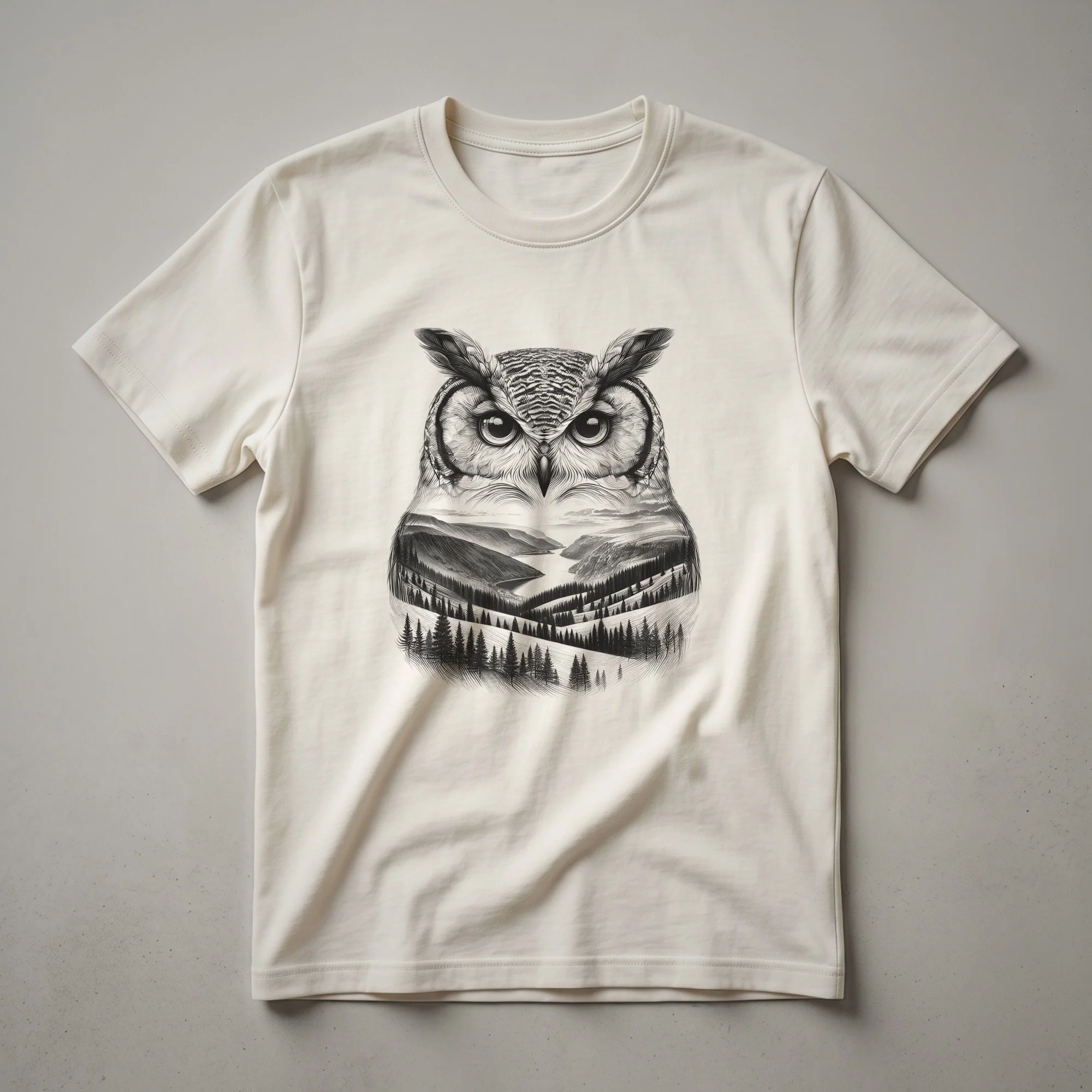 - A vintage-style owl drawing t-shirt for bird lovers.