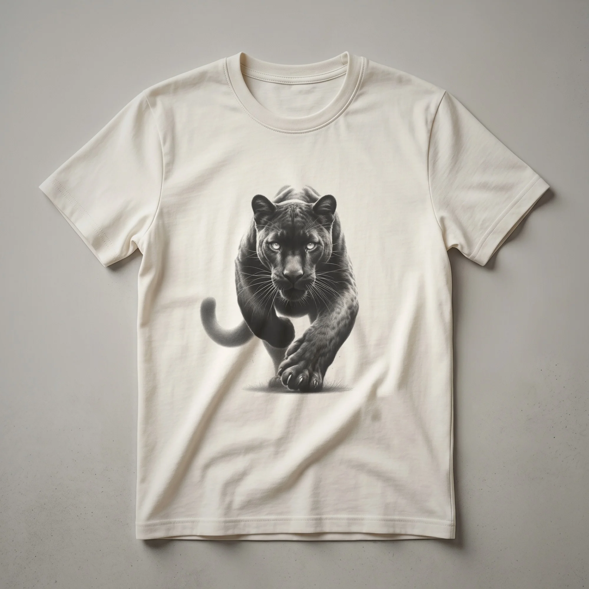 Wildlife enthusiasts who appreciate the raw beauty of big cats will reach for this striking panther sketch tee. The design features a detailed, vintage-style drawing of a panther in mid-stride, its powerful form rendered with fine linework against a dark background. Panthers, also known as black leopards or jaguars depending on the region, are apex predators renowned for their stealth and strength. These magnificent felines inhabit diverse environments across Asia, Africa, and the Americas, often found in dense forests and rocky terrains. This graphic shirt captures the elusive nature of these animals, making it a unique addition to any nature lover's wardrobe. It's a thoughtful gift for anyone who admires the wild and the untamed spirit of the jungle. Wear this t-shirt on your next hike or casual outing to express your passion for the natural world and its most captivating inhabitants. The artistic rendering provides an eye-catching visual that sparks conversation about conservation and the importance of preserving these incredible species.