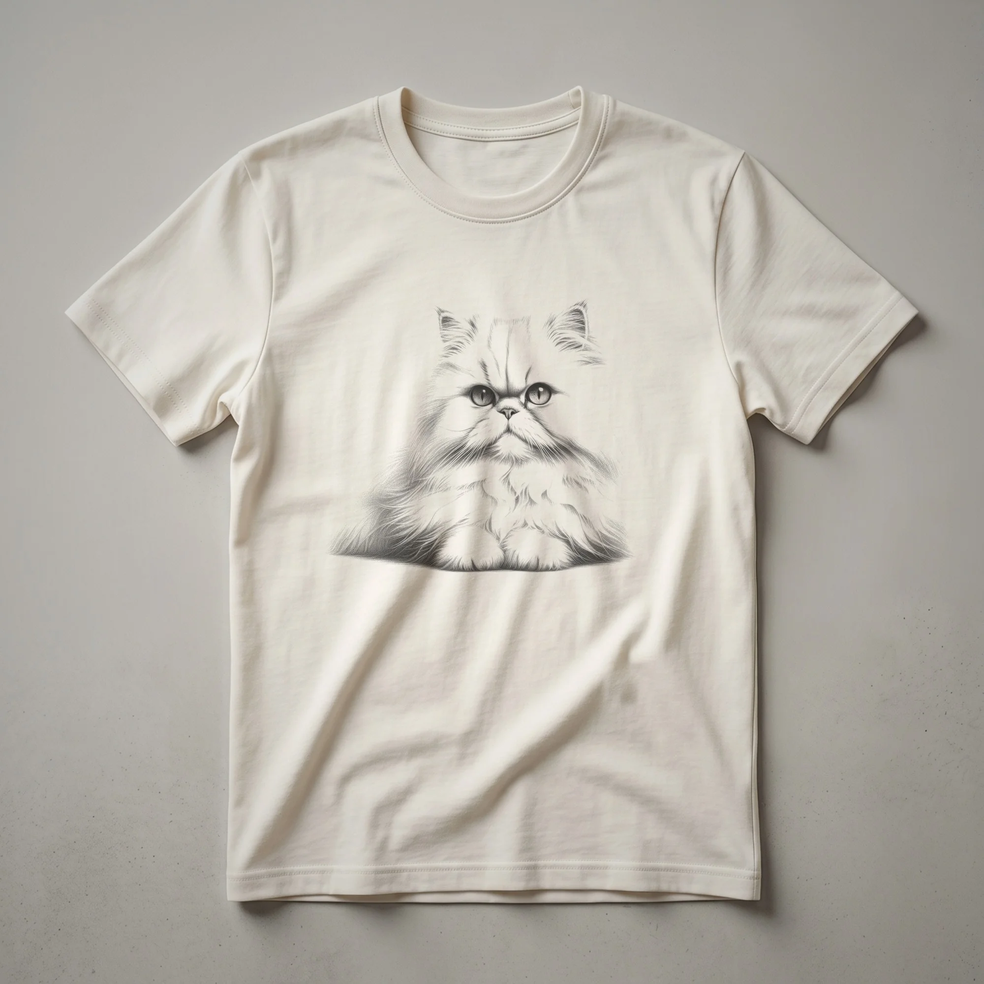 Persian cat owners who appreciate the breed's distinctive flat face and luxurious long fur will reach for this unique graphic tee. The design features a detailed sketch of a Persian cat's face, rendered in a vintage, artistic style. This eye-catching artwork captures the breed's serene expression and fluffy mane, making it a standout piece for any cat enthusiast. Persian cats, known for their calm demeanor and affectionate nature, originated in Persia (modern-day Iran) and were first brought to Europe in the 17th century. Their distinctive appearance, characterized by a short muzzle and round face, sets them apart from other breeds. This t-shirt is a thoughtful gift for the cat mom or cat dad who cherishes their Persian companion. Wear this shirt to casual outings, cat shows, or simply while relaxing at home with your beloved pet. It's a comfortable and stylish way to express your passion for these elegant animals. This shirt is a staple in the collection for anyone who adores the charm of Persian cats.