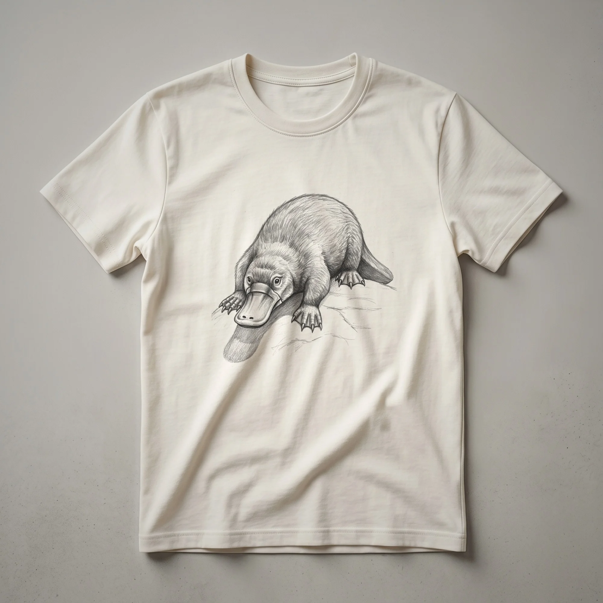 Wildlife enthusiasts who appreciate the extraordinary will reach for this striking platypus t-shirt. The design features a detailed line drawing of the iconic monotreme, showcasing its distinctive bill, webbed feet, and beaver-like tail. This artistic representation captures the platypus in a classic, vintage style, making it a standout piece for any nature lover's wardrobe. Platypuses are semi-aquatic, egg-laying mammals native to eastern Australia, including Tasmania. They are one of only five extant species of monotremes, a group of mammals that lay eggs rather than giving birth to live young. Their unique biology and shy nature make them a subject of fascination for zoologists and animal lovers alike. This shirt is a thoughtful gift for anyone captivated by Australia's unique fauna or the wonders of the natural world. Wear this tee to your next nature walk, a casual outing with friends, or while exploring the great outdoors. It's a conversation starter that celebrates one of the planet's most peculiar and endearing creatures.