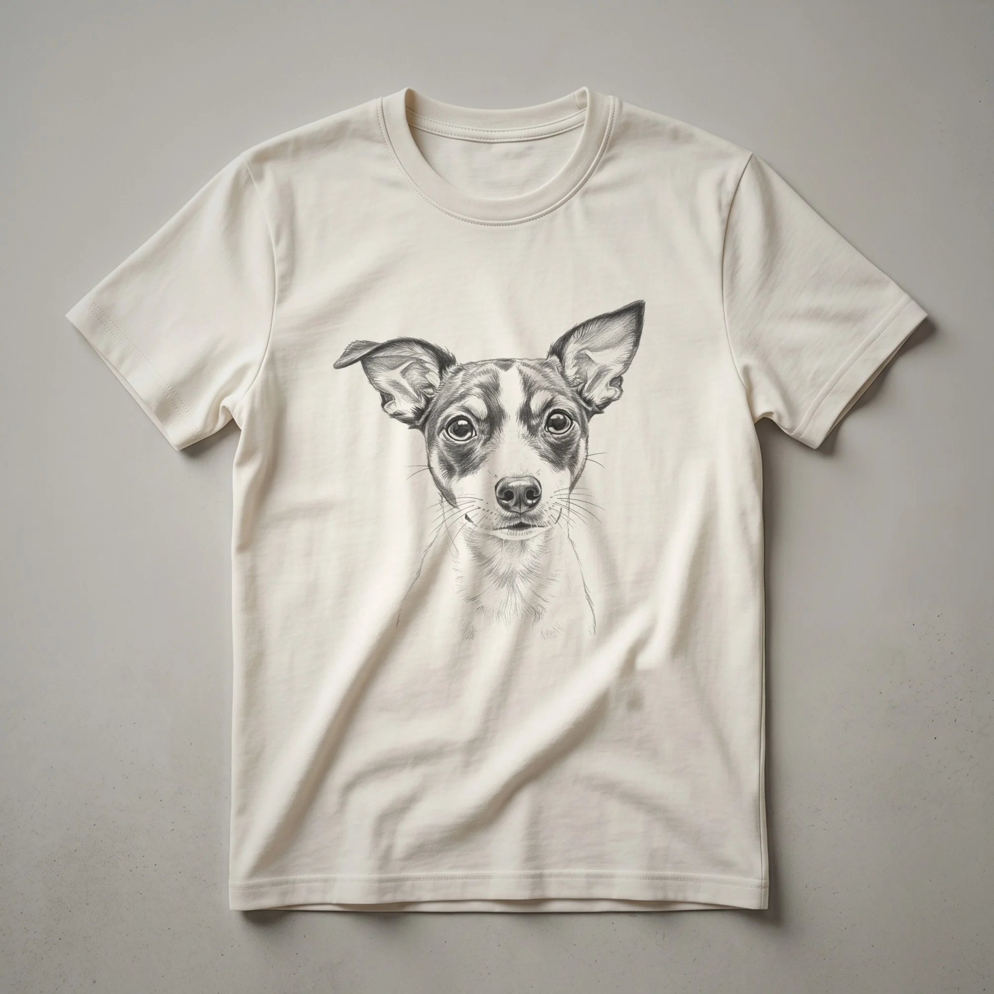 Rat Terrier owners who appreciate the breed's spirited personality and distinctive look will reach for this unique graphic tee. The design features a detailed, vintage-style line drawing of a Rat Terrier's face, capturing its alert expression and characteristic floppy ears. This artistic representation highlights the breed's intelligence and playful nature, making it a standout piece for any dog enthusiast. Rat Terriers, originally bred in the United States for hunting vermin, are known for their energetic demeanor and loyalty. This shirt is a wonderful way to celebrate that special bond between a person and their Rat Terrier. It makes a thoughtful gift for any Rat Terrier mom or dad, a thoughtful choice for casual outings, dog park visits, or simply relaxing at home. Wear this eye-catching t-shirt to show off your affection for this charming breed and spark conversations with fellow dog lovers. This apparel is a staple in any dog lover's wardrobe.