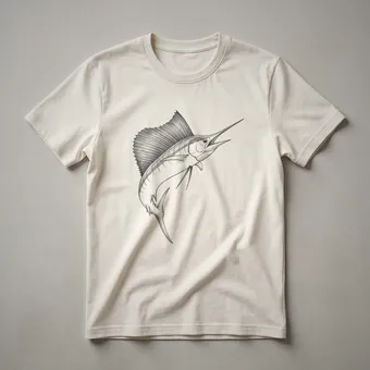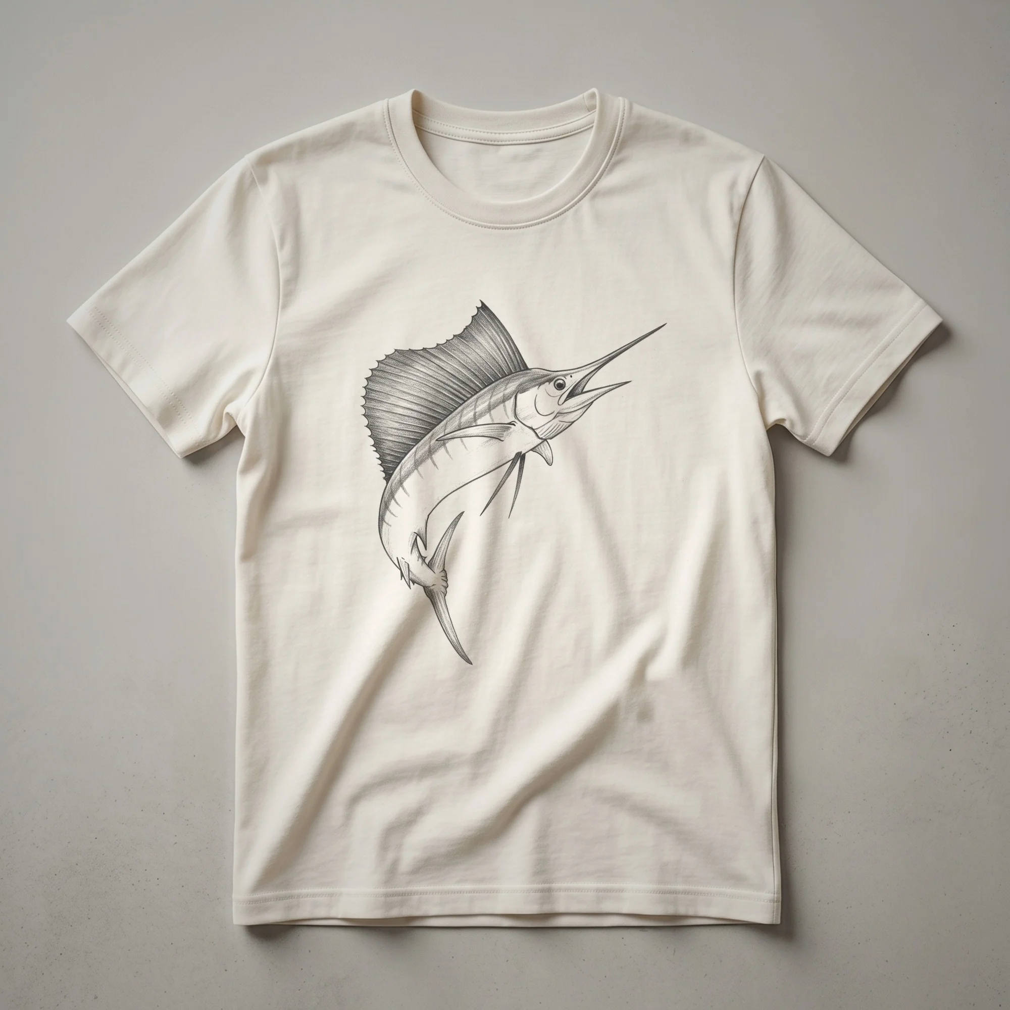 Sailfish enthusiasts who appreciate the power and beauty of these magnificent ocean predators will reach for this unique graphic tee. The design features a detailed, vintage-style line drawing of a sailfish in mid-leap, its iconic dorsal fin spread wide and its long bill prominent. Sailfish are renowned for their incredible speed, often exceeding 60 miles per hour, making them one of the fastest fish in the sea. They inhabit tropical and subtropical waters of the Atlantic and Pacific oceans, frequently found near coastlines where they hunt smaller fish and squid. This shirt is a thoughtful gift for any angler who has experienced the thrill of a sailfish encounter or for anyone captivated by marine wildlife. It's a staple in the collection for those who love the ocean and its inhabitants. Wear this tee on your next fishing trip, to the beach, or while sharing stories of the sea with fellow ocean lovers. This apparel celebrates the spirit of adventure and the wild beauty of the marine world.