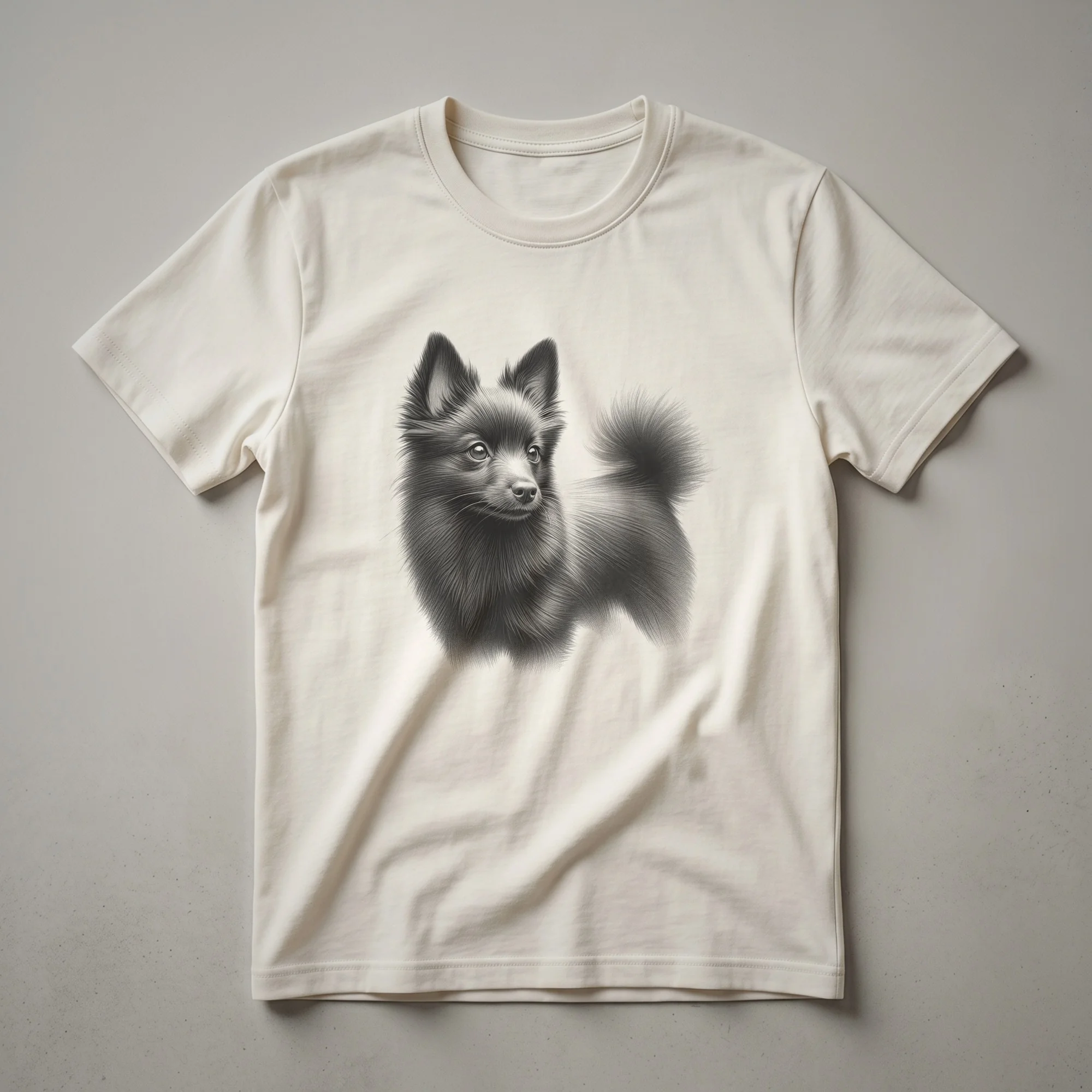 Dog lovers will appreciate this vintage-style black and white line art featuring the noble head and expressive features of a beloved Schipperke. The artwork features a detailed, vintage-style line drawing of a Schipperke's head and upper body, rendered in black and white against a dark background. This striking depiction captures the breed's alert expression and characteristic fluffy mane. Schipperkes, originating from Belgium, are known for their curious and energetic nature, often described as small black "ship dogs" due to their historical role on barges. This shirt is a thoughtful gift for any Schipperke mom or dad, or for someone who admires this spirited breed. It's a staple in the collection for dog lovers who want to wear their passion. Wear this tee to your next dog park visit or casual outing to spark conversations about your favorite canine companion. The detailed artistry makes this shirt a standout piece for anyone who loves dogs and unique graphic apparel.