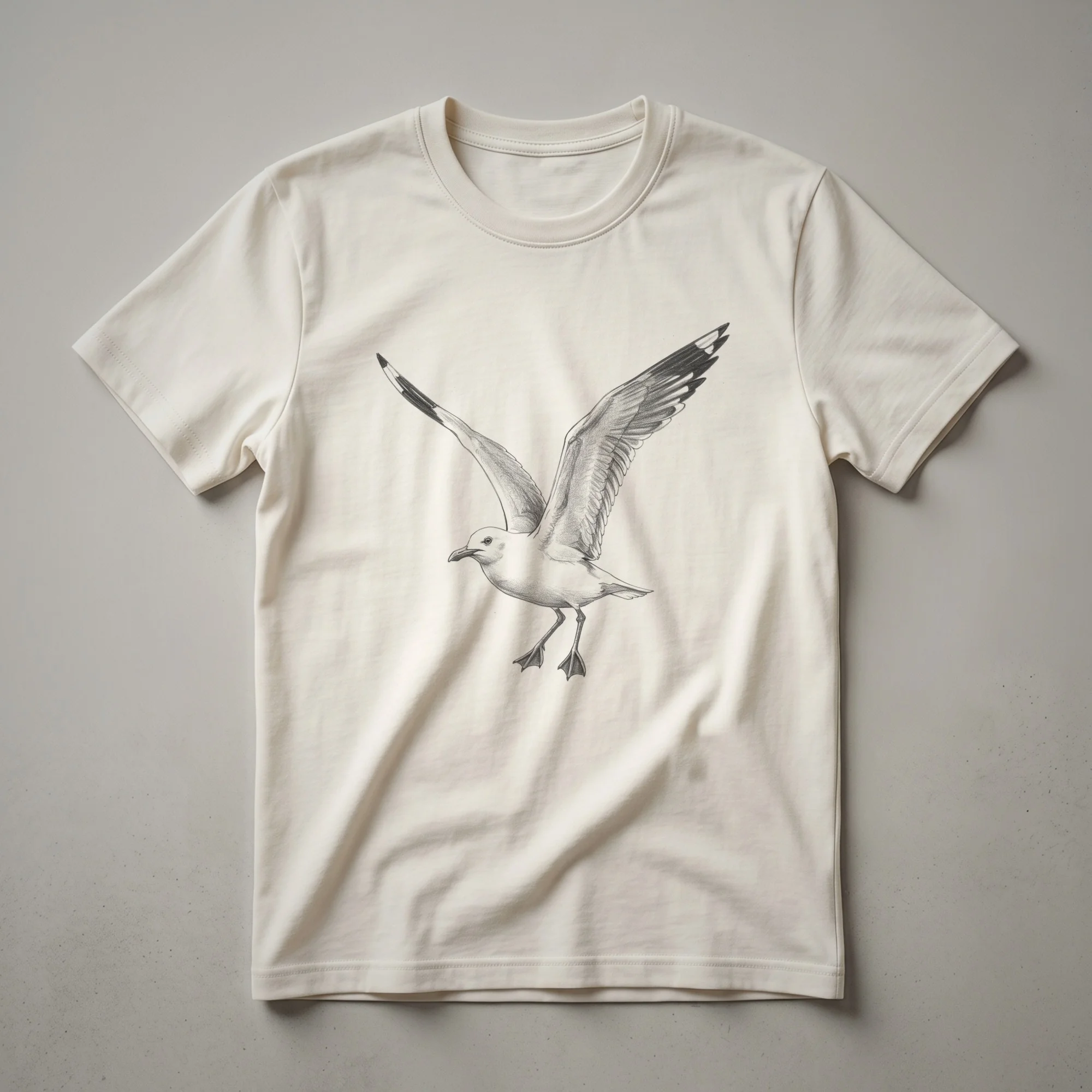 - A striking vintage seagull line drawing t-shirt for bird lovers.