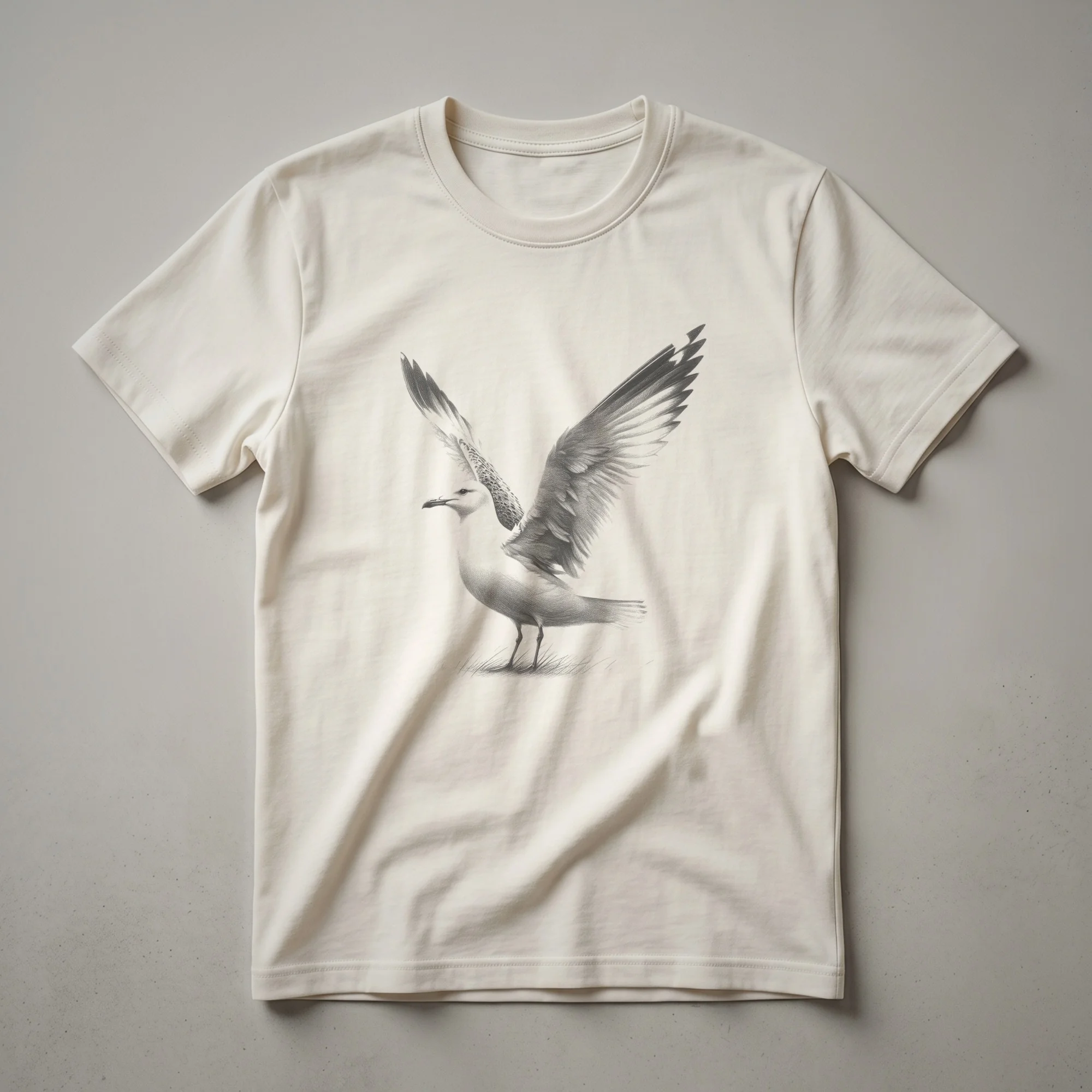 Seagulls, often found near coastlines and open water, are a common sight for many who enjoy the outdoors. This vintage-inspired graphic tee features a detailed sketch of a seagull in mid-flight, its wings spread wide as if soaring on the breeze. The line-art style evokes a classic, artistic feel, making this shirt a standout piece for any bird enthusiast. Seagulls are known for their adaptability and intelligence, often seen scavenging or fishing along beaches and harbors. This t-shirt is a wonderful way for birdwatchers, nature lovers, or anyone who appreciates the beauty of coastal wildlife to express their passion. It makes a thoughtful gift for someone who enjoys hiking, birdwatching, or simply loves the aesthetic of vintage wildlife illustrations. Wear this unique shirt to your next nature walk or casual outing and let your appreciation for these fascinating birds take flight. This apparel is a staple for anyone drawn to the natural world.