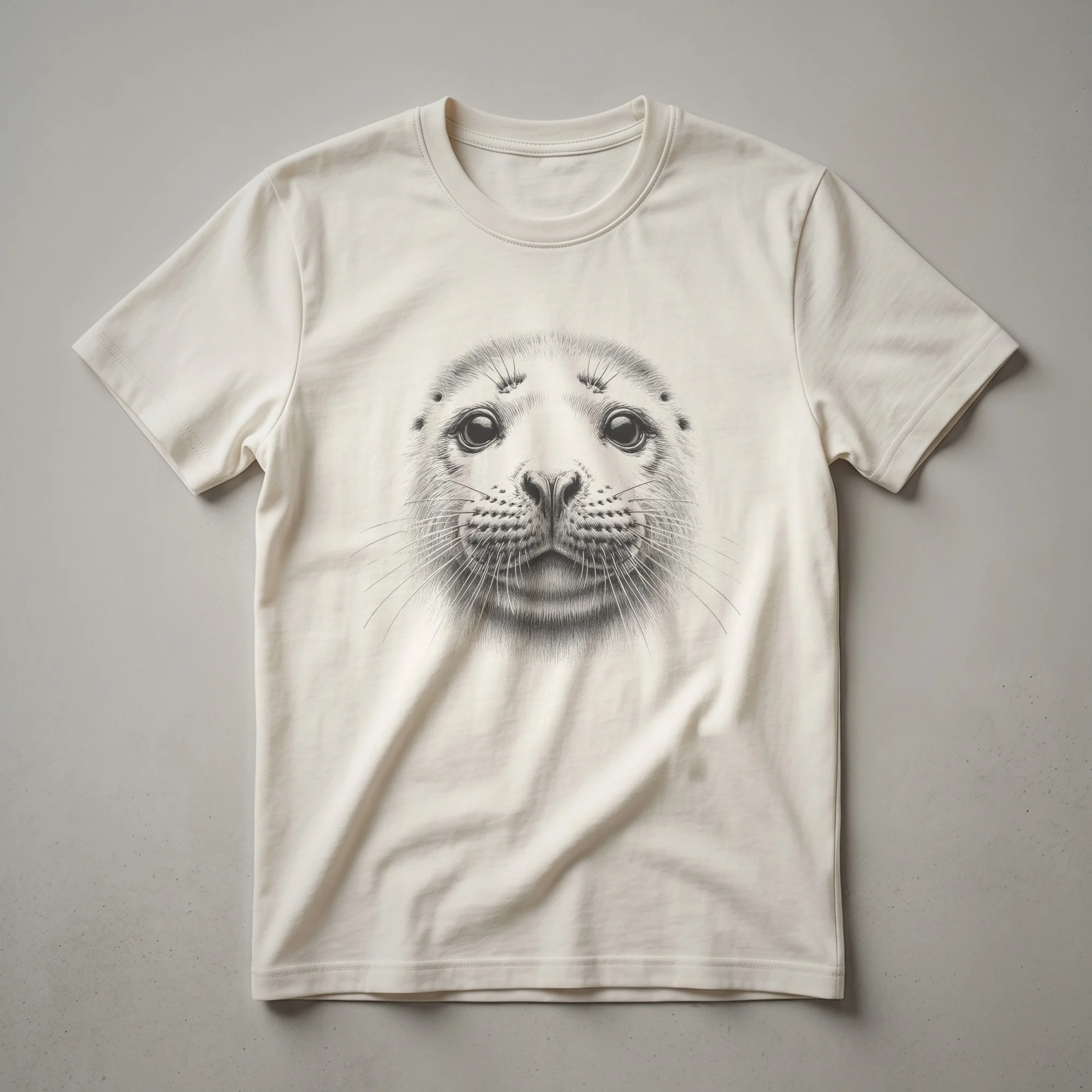 Marine life enthusiasts will appreciate the detailed artistry of this vintage seal sketch t-shirt. The design features a close-up, black and white rendering of a seal's face, capturing its distinctive whiskers and soulful eyes with a classic, hand-drawn aesthetic. Seals, belonging to the order Pinnipedia, are semi-aquatic marine mammals found in the Arctic and Antarctic regions, as well as along temperate coastlines worldwide. They are known for their streamlined bodies, adapted for swimming, and their ability to dive to significant depths in search of food like fish and crustaceans. This graphic tee is a thoughtful gift for anyone who admires these fascinating creatures, whether they are divers, oceanographers, or simply appreciate the beauty of the natural world. Wear this shirt to the aquarium, on a coastal walk, or simply as a conversation starter about your passion for the ocean's inhabitants. It's a staple for any wildlife lover's wardrobe, offering a touch of vintage charm and a deep connection to the sea.