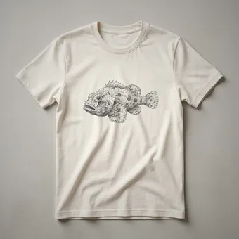 - Features a detailed vintage line drawing of a stonefish, perfect for marine life lovers.