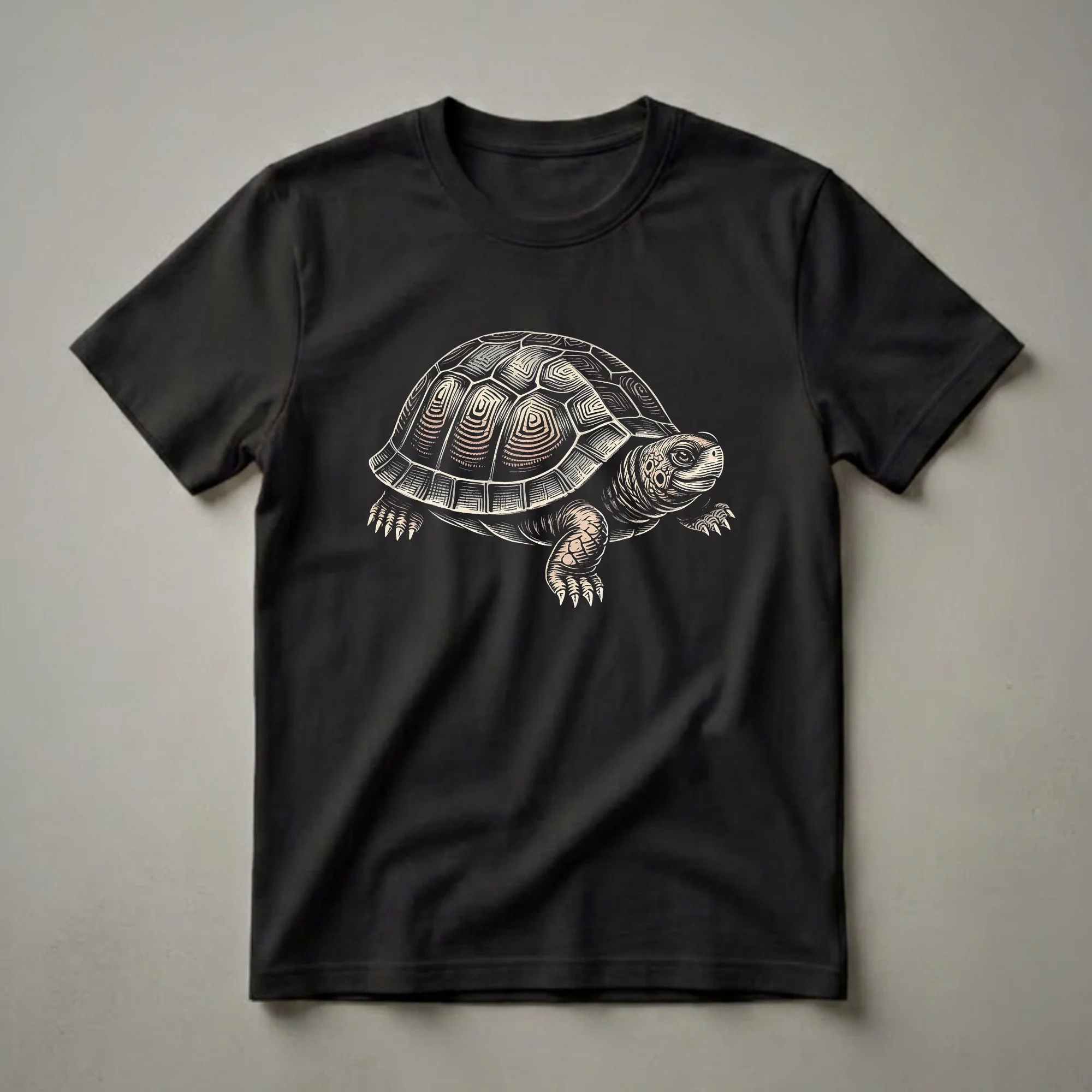 Reptile enthusiasts will appreciate the intricate detail of this vintage-style tortoise graphic tee. The artwork features a realistic depiction of a tortoise, showcasing the textured patterns of its shell and the scaly skin of its legs and head. The linework style evokes classic natural history illustrations, making this shirt a striking piece for anyone who admires these ancient creatures. Tortoises are known for their longevity, with some species living well over a century, embodying a sense of enduring wisdom and patience. This t-shirt works well for nature lovers, wildlife photographers, or anyone who finds inspiration in the slow and steady journey of these fascinating reptiles. It makes a thoughtful gift for a friend or family member who has a particular fondness for tortoises or the natural world. Wear this unique shirt to a nature walk, a casual outing with friends, or simply to express your appreciation for the animal kingdom. This graphic tee is a conversation starter for those who understand the beauty of detailed wildlife art and the quiet resilience of the tortoise.