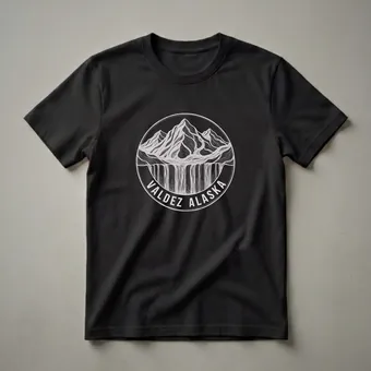 Valdez, Alaska, a town nestled between towering mountains and the pristine waters of Prince William Sound, is captured in this striking sketch art t-shirt. The design features a dramatic waterfall cascading down rugged peaks, all enclosed within a circular emblem. This graphic tee is a tribute to the rugged beauty and adventurous spirit of Alaska's northern frontier. Valdez is renowned for its stunning natural landscapes, including glaciers, fjords, and abundant wildlife, making it a prime destination for outdoor enthusiasts. This shirt is for anyone who has experienced the awe-inspiring scenery of Valdez or dreams of exploring its wild terrain. It serves as a constant reminder of the untamed wilderness and the unique charm of this Alaskan gem. Whether you're a seasoned Alaskan resident or a visitor captivated by its grandeur, this tee is a wearable piece of art. It makes a thoughtful gift for friends and family who share a passion for Alaska's natural wonders or who have a special connection to Valdez. Wear this shirt on your next outdoor adventure or as a casual statement piece, celebrating the spirit of the Last Frontier.