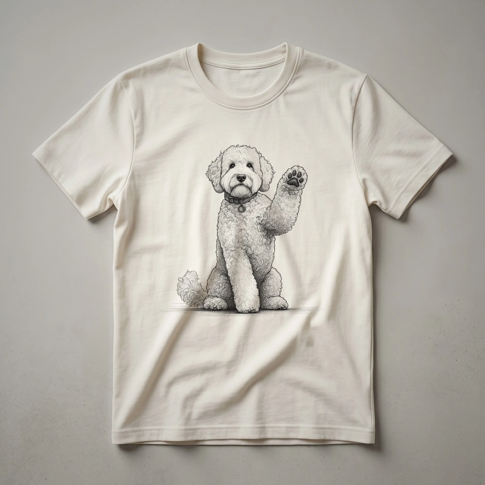 Whoodle owners know the joy these intelligent and affectionate dogs bring into a home. This eye-catching t-shirt features a delightful graphic of a Whoodle dog with its paw raised, a playful gesture that captures their spirited personality. Whoodles, a crossbreed between a Wheaten Terrier and a Poodle, are known for their hypoallergenic coats and friendly disposition, making them wonderful companions. This graphic tee is a staple for any Whoodle mom or dad who wants to display their affection for their furry family member. It makes a thoughtful gift for birthdays, holidays, or just because for the Whoodle enthusiast in your life. Wear this shirt to your next dog park visit or casual outing and connect with fellow dog lovers. This apparel is a great way to express your bond with your four-legged friend.