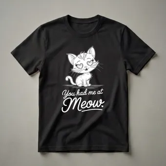 - Showcase your devotion to your feline friend with this 'You Had Me at Meow' graphic tee.